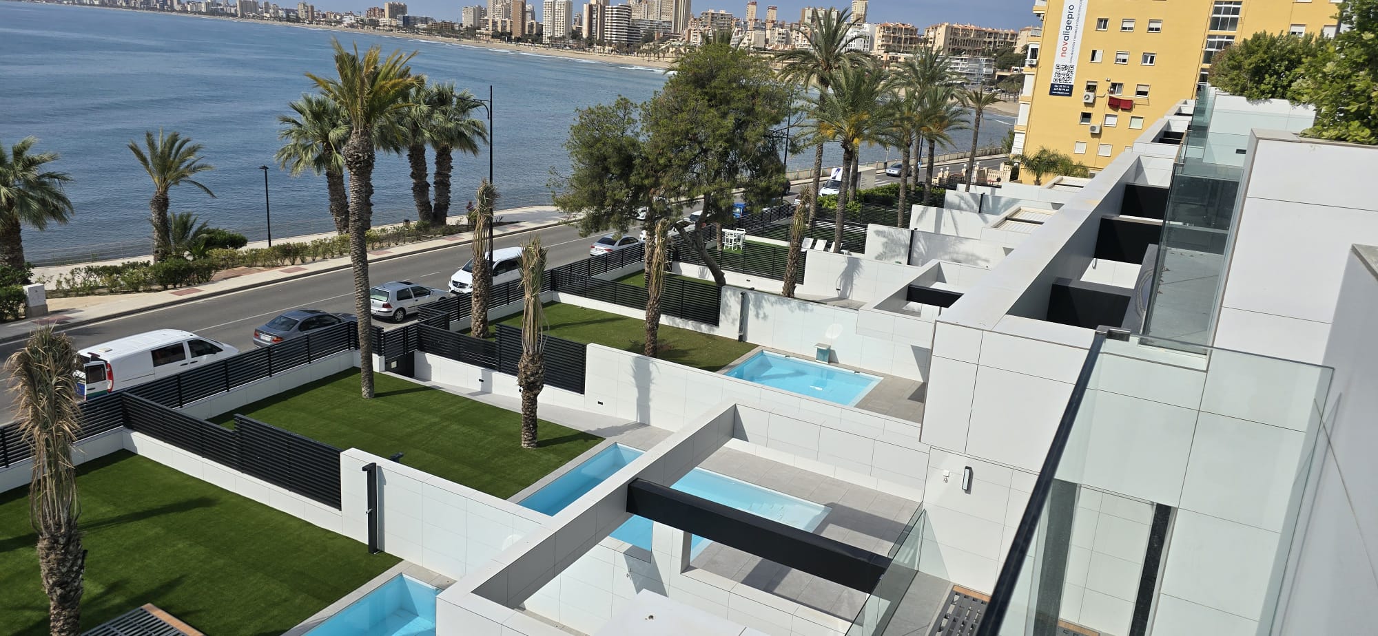 En esta promoción residencial situada en una de las zonas más privilegiadas de El Campello, desarrollamos un conjunto de 10 viviendas unifamiliares, concebidas para aprovechar al máximo las vistas al mar y la luz natural del Mediterráneo.